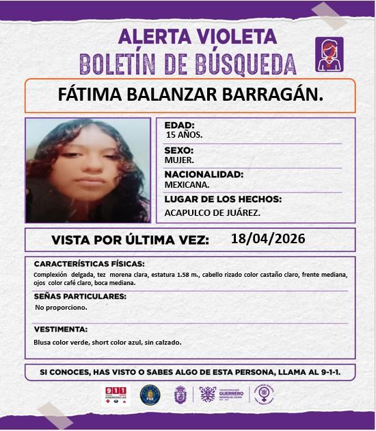 Activamos la #AlertaVioleta por FÁTIMA BALANZAR BARRAGÁN . Tu colaboración es fundamental para encontrarla y que regrese con su familia.
