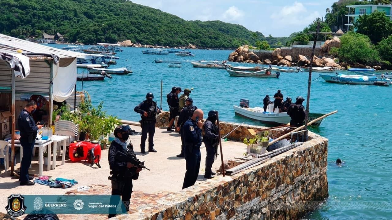 La SSP Guerrero informa que agentes de la Policía Estatal, coordinados con el Ejército Mexicano y Marina, mantienen en el área una búsqueda pie tierra y por mar para dar con el paradero del resto de los agresores.