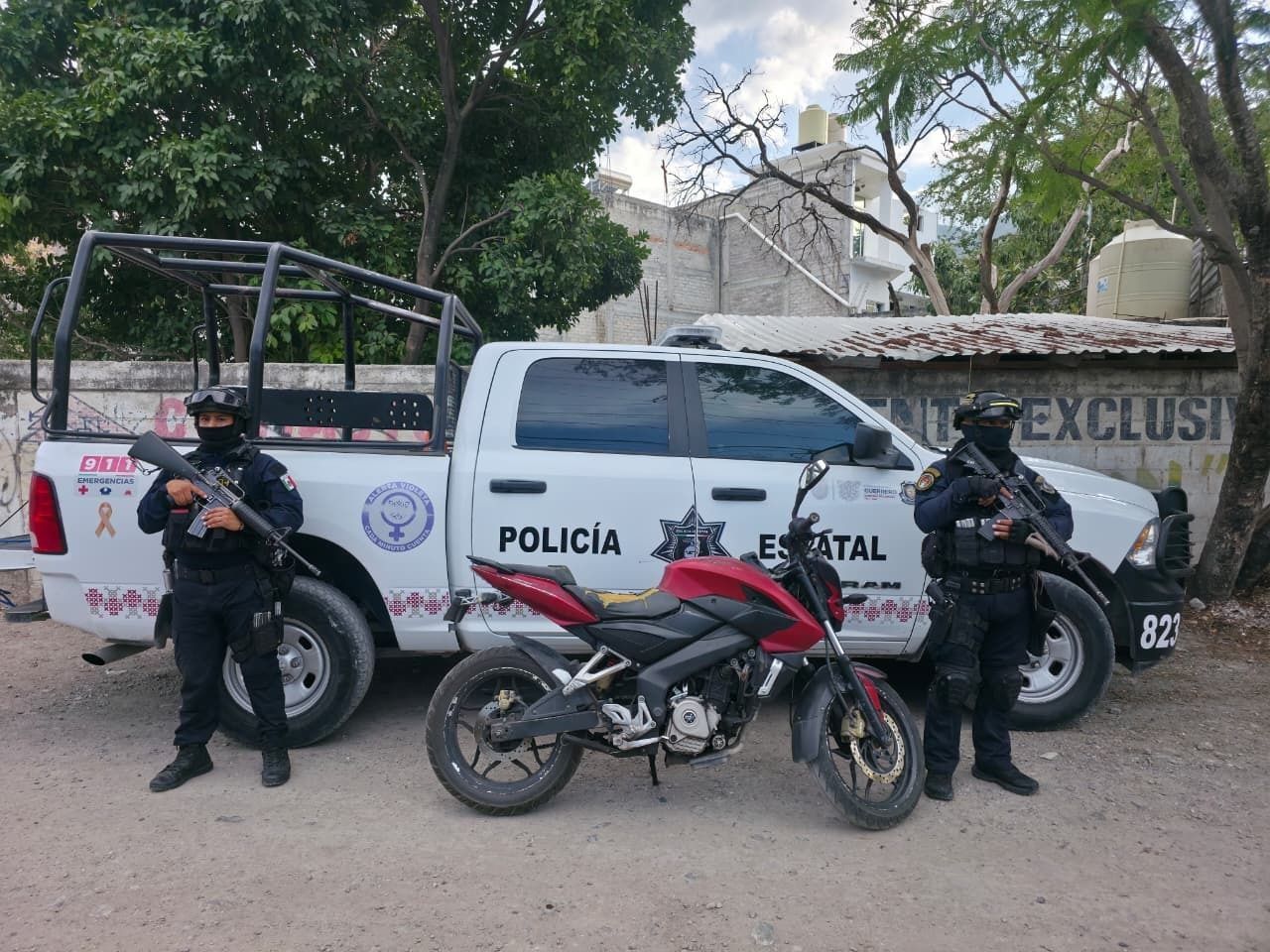 Durante recorridos de prevención y vigilancia en la colonia Ampliación Jardines del Sur, en el municipio de Chilpancingo de los Bravo, personal de la Policía Estatal localizó y aseguró una motocicleta con reporte de robo.