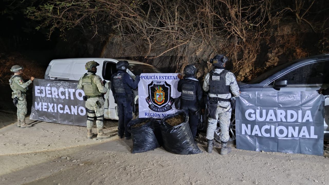 Chilpancingo, Gro., 24 de abril de 2026. La Secretaría de Seguridad Pública del Estado de Guerrero informa que, como resultado de acciones coordinadas de seguridad y vigilancia, elementos de la Policía Estatal, en coordinación con el Ejército Mexicano y la Guardia Nacional, realizaron el aseguramiento de dos vehículos y presunta droga en el municipio de Copalillo.