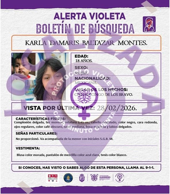 La #AlertaVioleta de Karla Damaris Baltazar Monte,  ha sido desactivada, gracias al trabajo coordinado y colectivo entre sociedad y la autoridad.