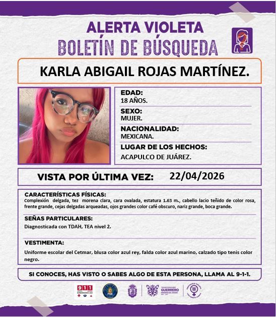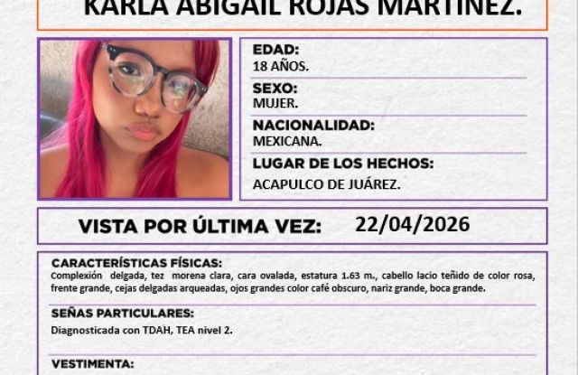 Se solicita su colaboración para la difusión y localización de la Joven KARLA ABIGAIL ROJAS MARTÍNEZ.