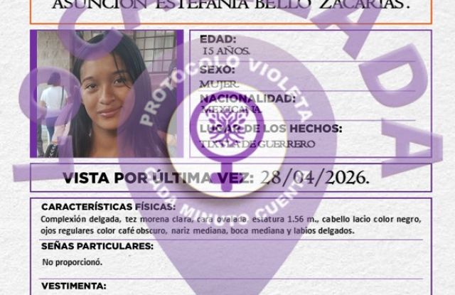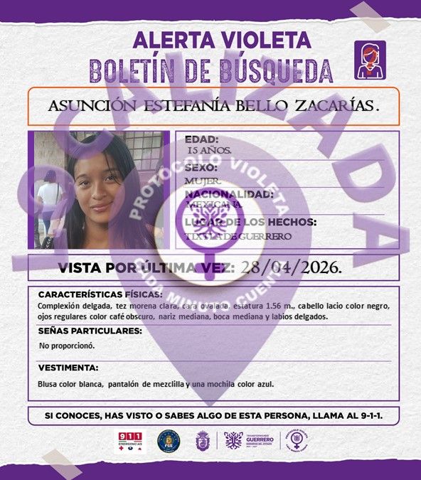 Se informa la localización de Asunción Estefanía Bello Zacarías.