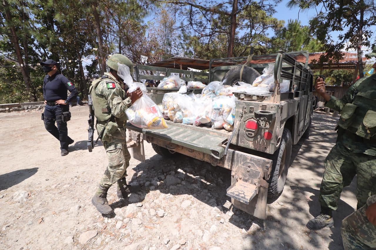 Al filo de las 12:50 horas de este jueves, helicópteros de la Secretaría de la Defensa Nacional aterrizaron en la Ciénega de Puerto Alegre, municipio de San Miguel Totolapan, donde se organizó el traslado con despensas y medicamentos al ejido de La Conchitas, con un aproximado de una hora de camino vía terrestre, donde se incorporó el Comandante del 41 Batallón de Infantería.