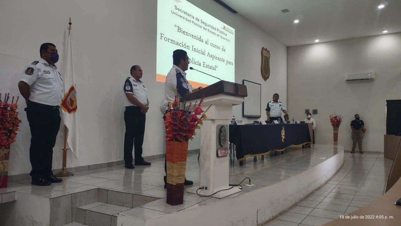 En el auditorio de la UNIPOL, el titular de la SSP Guerrero señaló que este nuevo grupo, conformado por 38 mujeres y 32 hombres, aprobaron las evaluaciones y cumplen con los perfiles requeridos para ingresar a esta formación inicial.