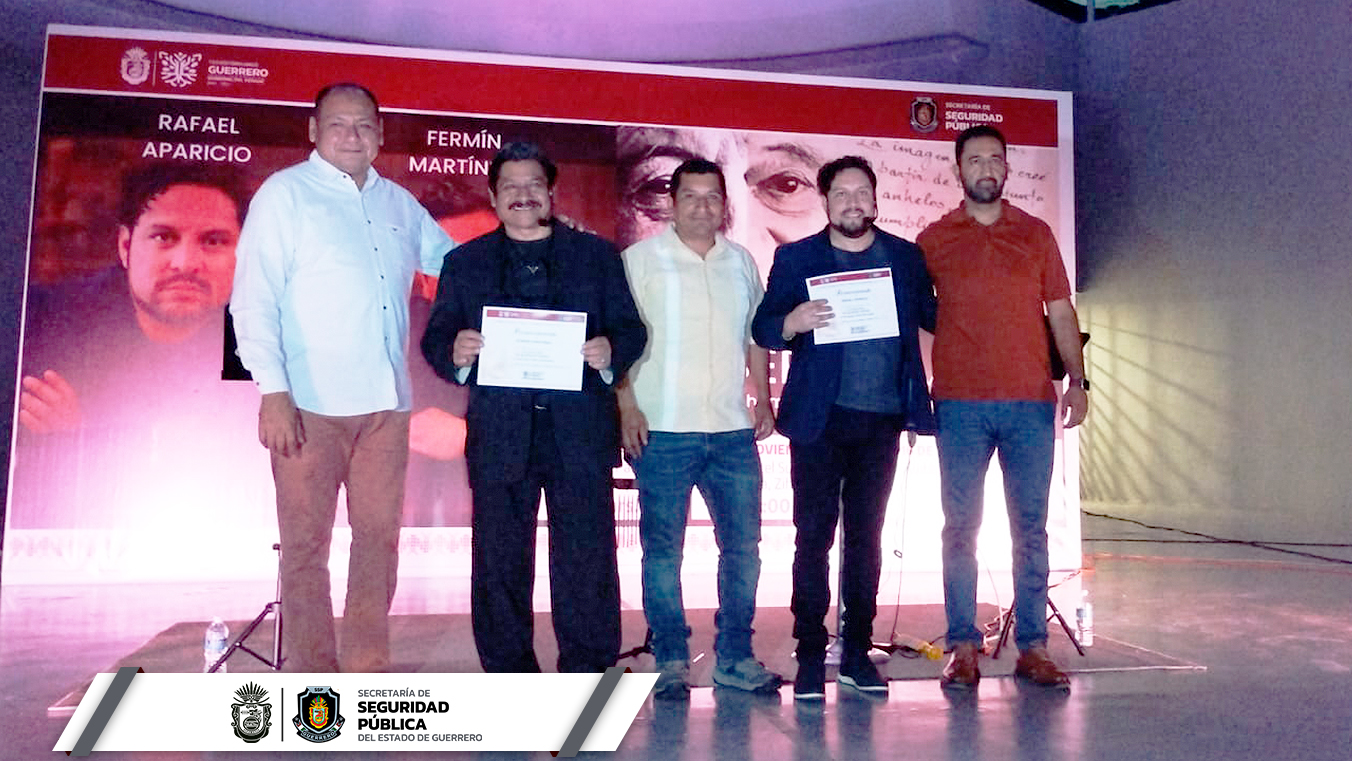 Tras la lectura de los poemas, las autoridades de la SSP Guerrero entregaron reconocimientos al primer actor, Fermín Martínez y el productor guerrerense, Rafael Aparicio por su presentación.