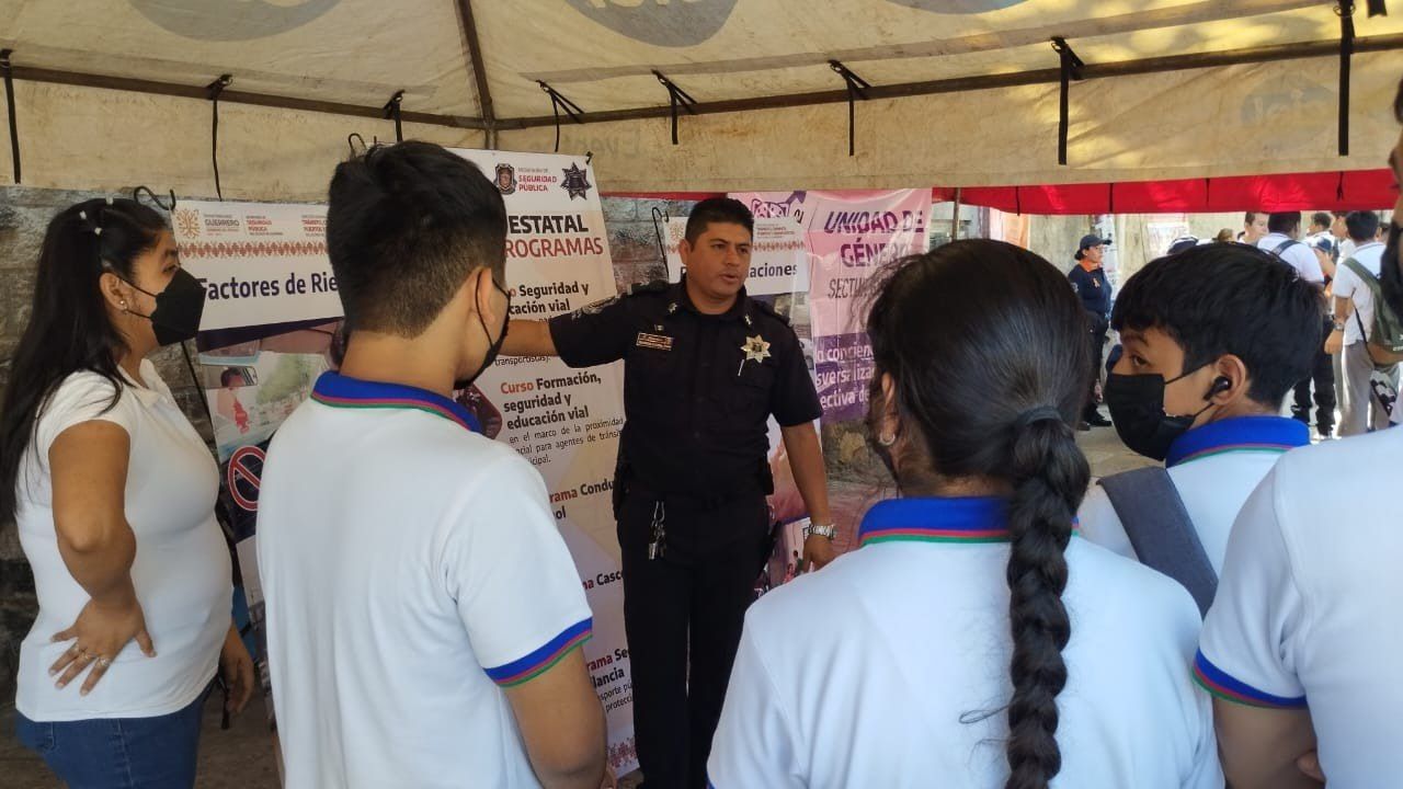 En el exterior de la escuela secundaria se instalaron módulos informativos sobre Alerta Violeta, Prevención del Delito y de la Violencia. También participó Tránsito Estatal, la Unidad de Género y la Unidad Canina.