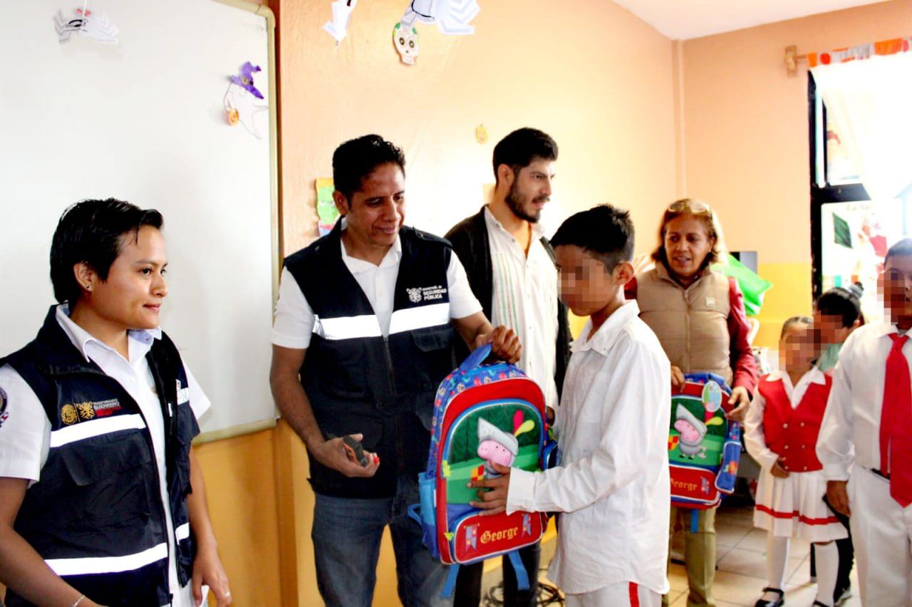 El personal de Prevención Social del Delito entregó 100 mochilas con kits escolares a igual número de niñas y niños a cambio de un juguete bélico.