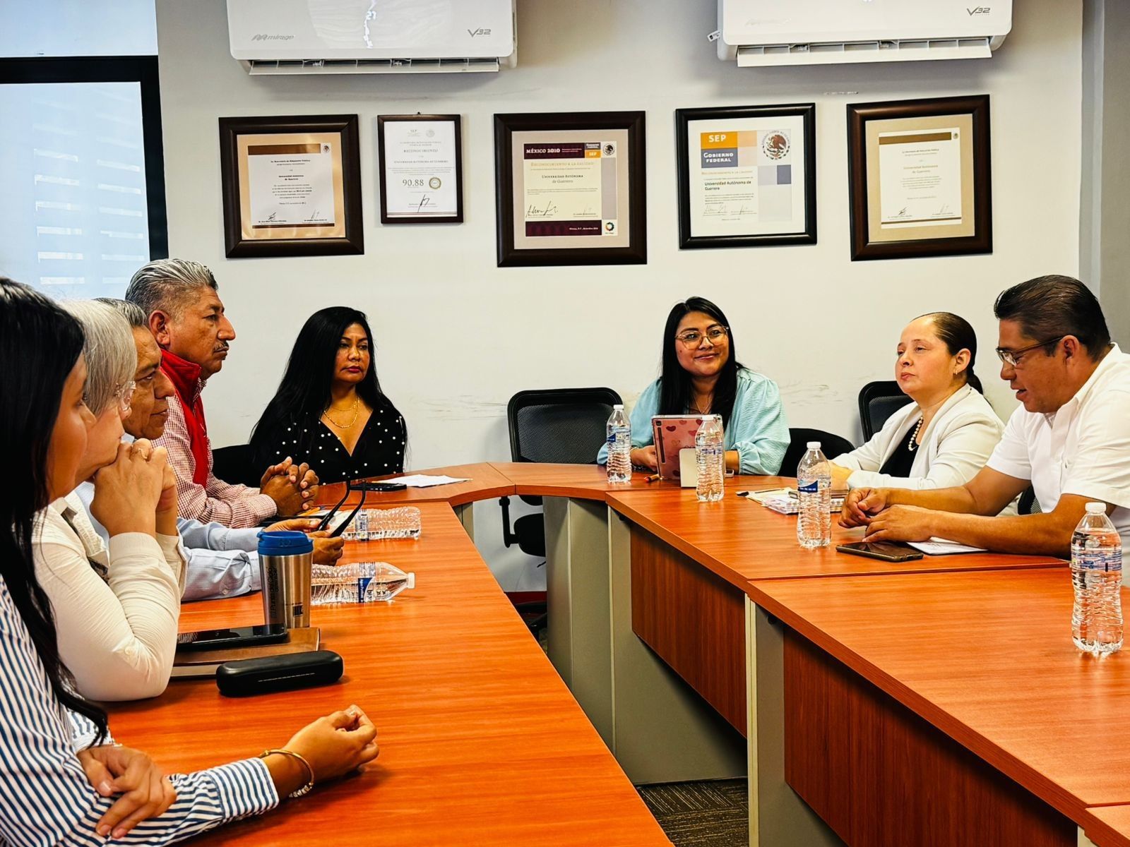 El encuentro contó con la participación de la subsecretaria de Administración, Apoyo Técnico y Desarrollo Humano de la SSP, Mtra. Graciela Vidal Pascual; la directora general de Vinculación de la UAGro, Dra. Marisol Salado Barrera; el director de Responsabilidad Social Universitaria, Mtro. Rogelio Hipólito Tacuba, así como otras autoridades de la UAGro y de la SSP Guerrero. El objetivo fue establecer mecanismos de coordinación que impulsen la capacitación, profesionalización y el desarrollo integral del personal de seguridad pública estatal, así como facilitar la incorporación de jóvenes universitarios a la Policía Estatal, fortaleciendo con ello la seguridad ciudadana y el bienestar colectivo en la entidad.