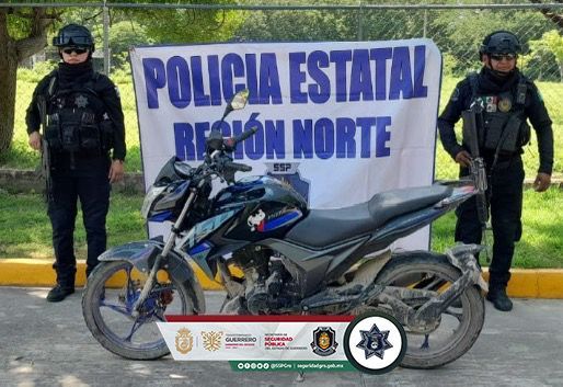 Durante recorridos de seguridad y vigilancia en la localidad de Tuxpan, municipio de Iguala, elementos de la Policía Estatal localizaron una motocicleta en aparente estado de abandono.