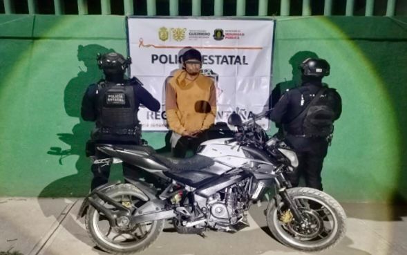 Durante patrullajes de seguridad en la colonia Centro, en el municipio de Olinalá, personal de la Policía Estatal detuvo a un masculino y recuperó una motocicleta.