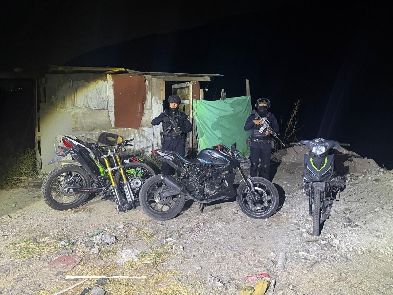 Durante recorridos de prevención del delito y verificación de la legalidad de unidades motoras, se localizó una motocicleta con reporte de robo vigente, así como dos más con alteraciones en sus números de serie.
