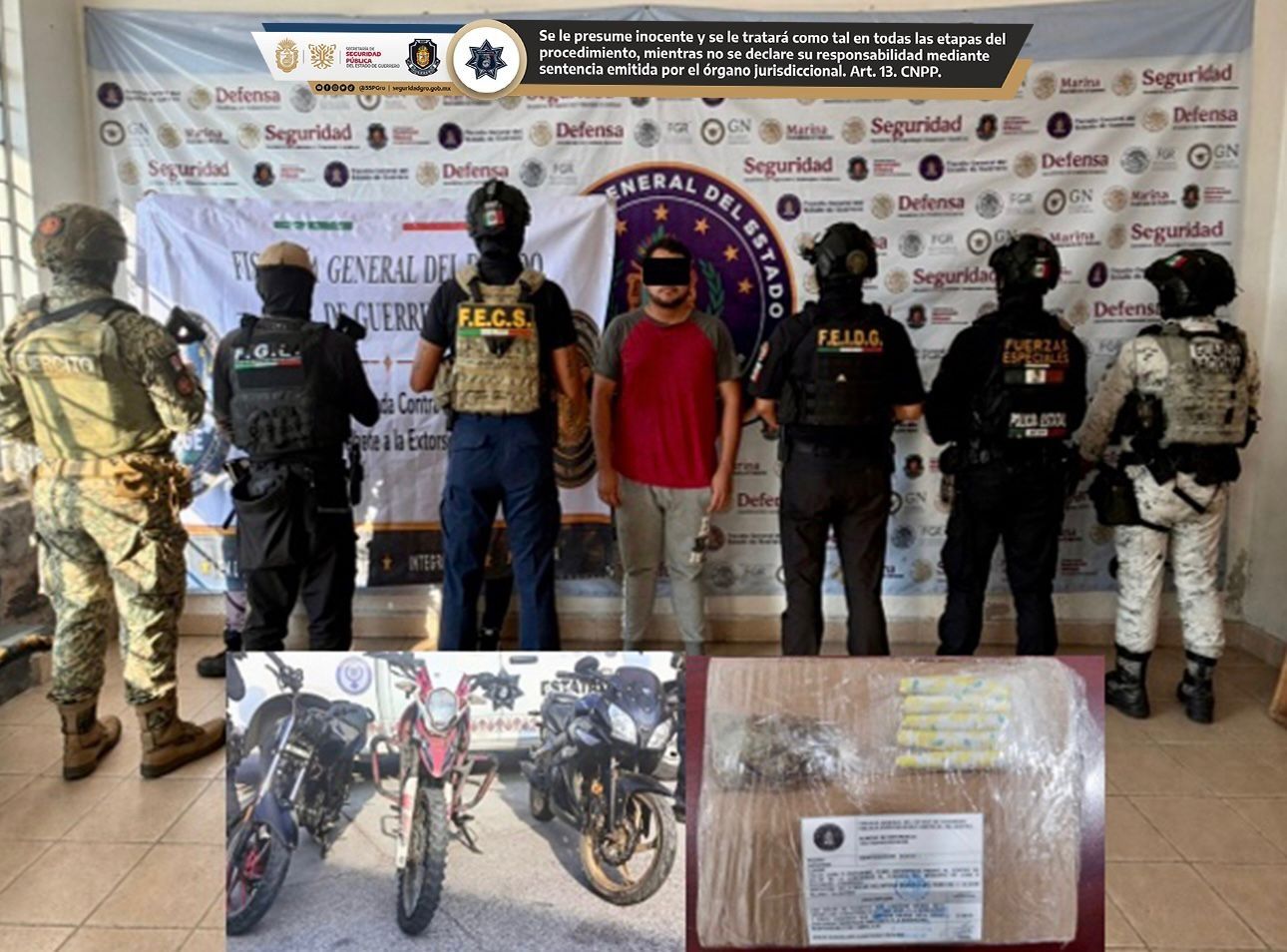 Detienen fuerzas de seguridad a masculino y aseguran motocicletas con reporte de robo y probable droga en Juan R. Escudero