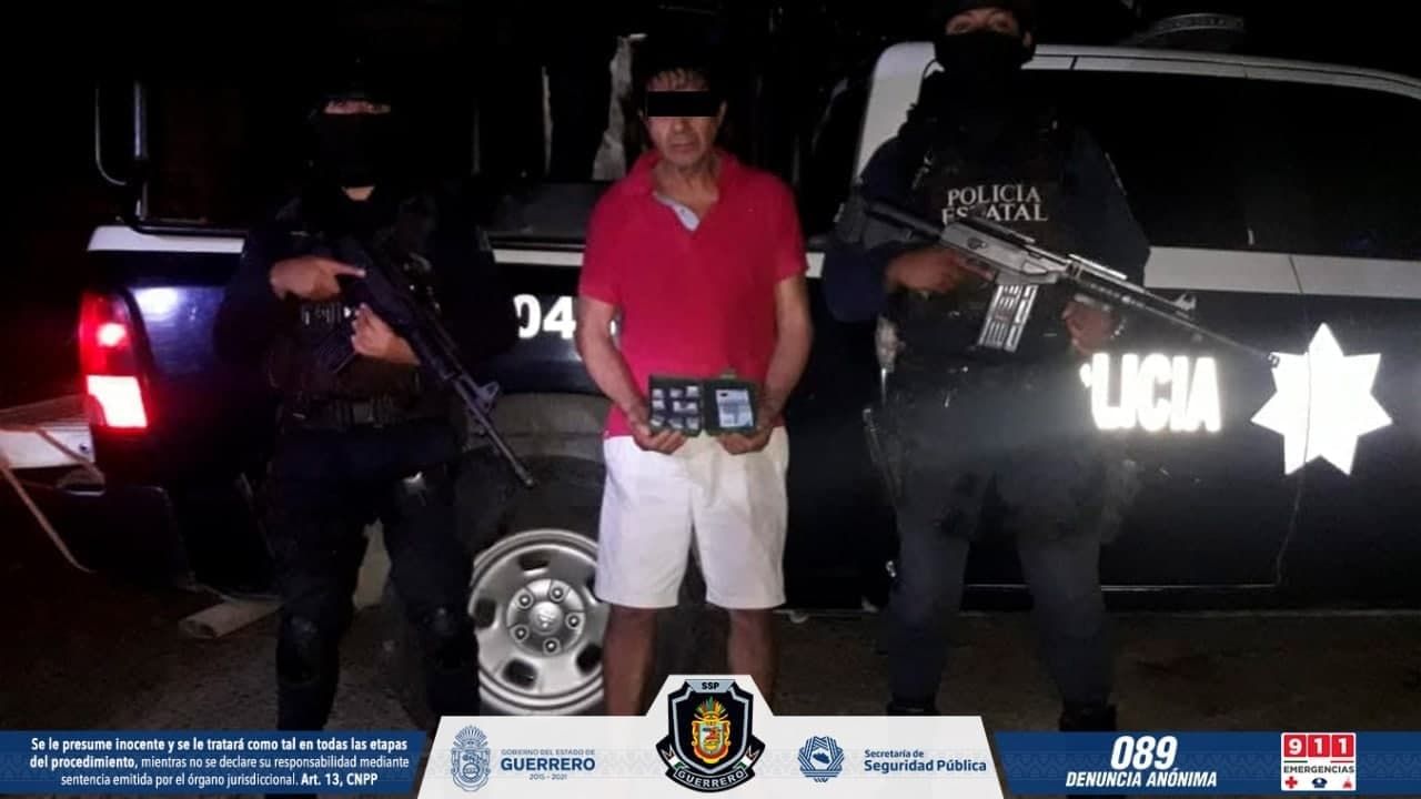 Chilpancingo, Guerrero, 11 de diciembre de 2020.- Elementos de la Policía Estatal y del Grupo de Operaciones Especiales “Jaguar” aseguraron a una persona en posesión de presunta droga en el municipio de Zihuatanejo de Azueta.