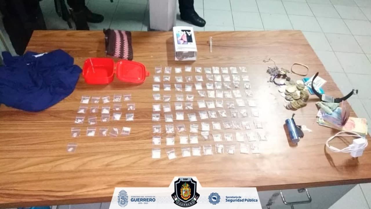 Policía Estatal y Grupo “Jaguar” aseguran a dos personas con presunta droga en el municipio de Zihuatanejo