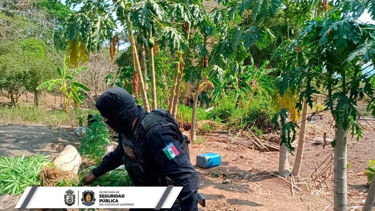 Chilpancingo, Guerrero, 21 de abril de 2023.- En acciones de seguridad y despliegue terrestre de la Policía Estatal en el municipio de San Luis Acatlán, se detectó y aseguró un plantío con características propias de la marihuana.