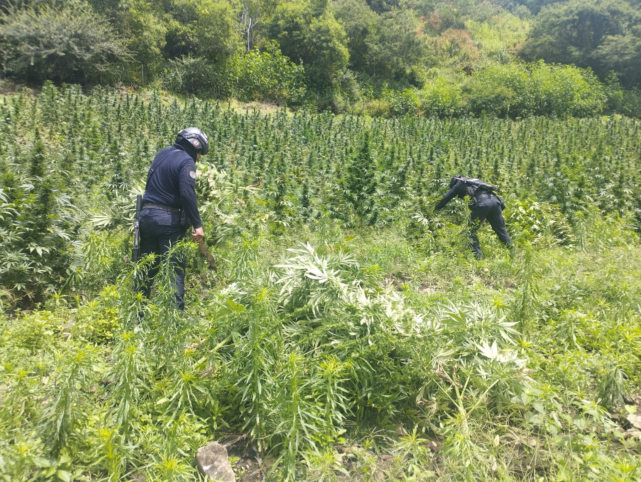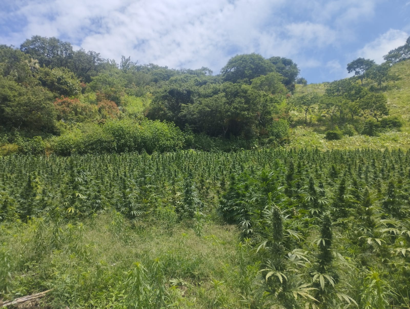 La marihuana procesada, con un peso aproximado de 100 kilogramos, fue puesta a disposición de la autoridad competente para las investigaciones correspondientes, mientras que los plantíos fueron destruidos e incinerados conforme a los protocolos establecidos.