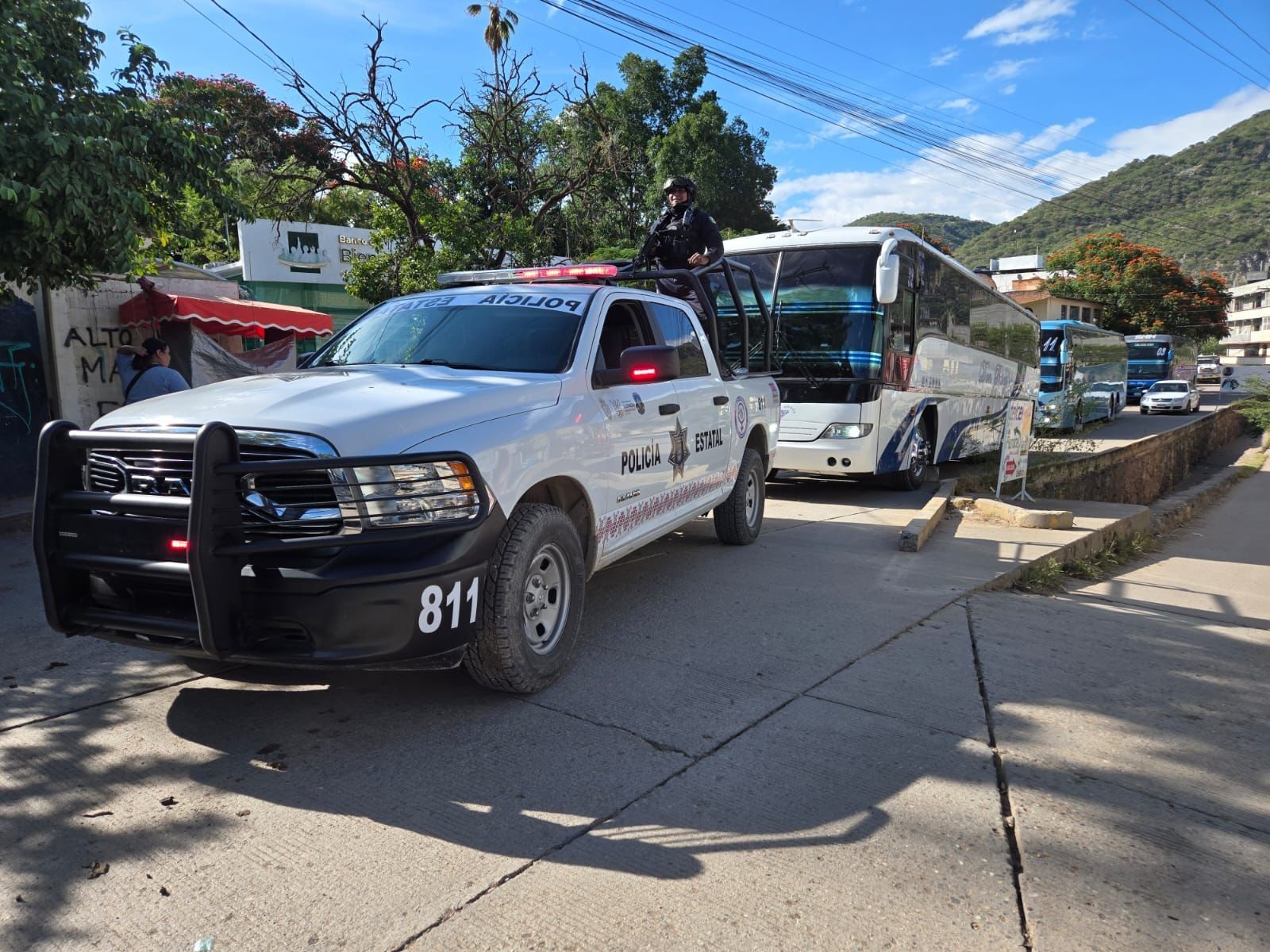 En el municipio de Tlapa de Comonfort, personal de la Policía Estatal dio acompañamiento a cuatro autobuses que partieron este martes con destino a estados del norte, en los cuales viajaban mujeres y hombres guerrerenses que se trasladan temporalmente para trabajar en actividades agrícolas.