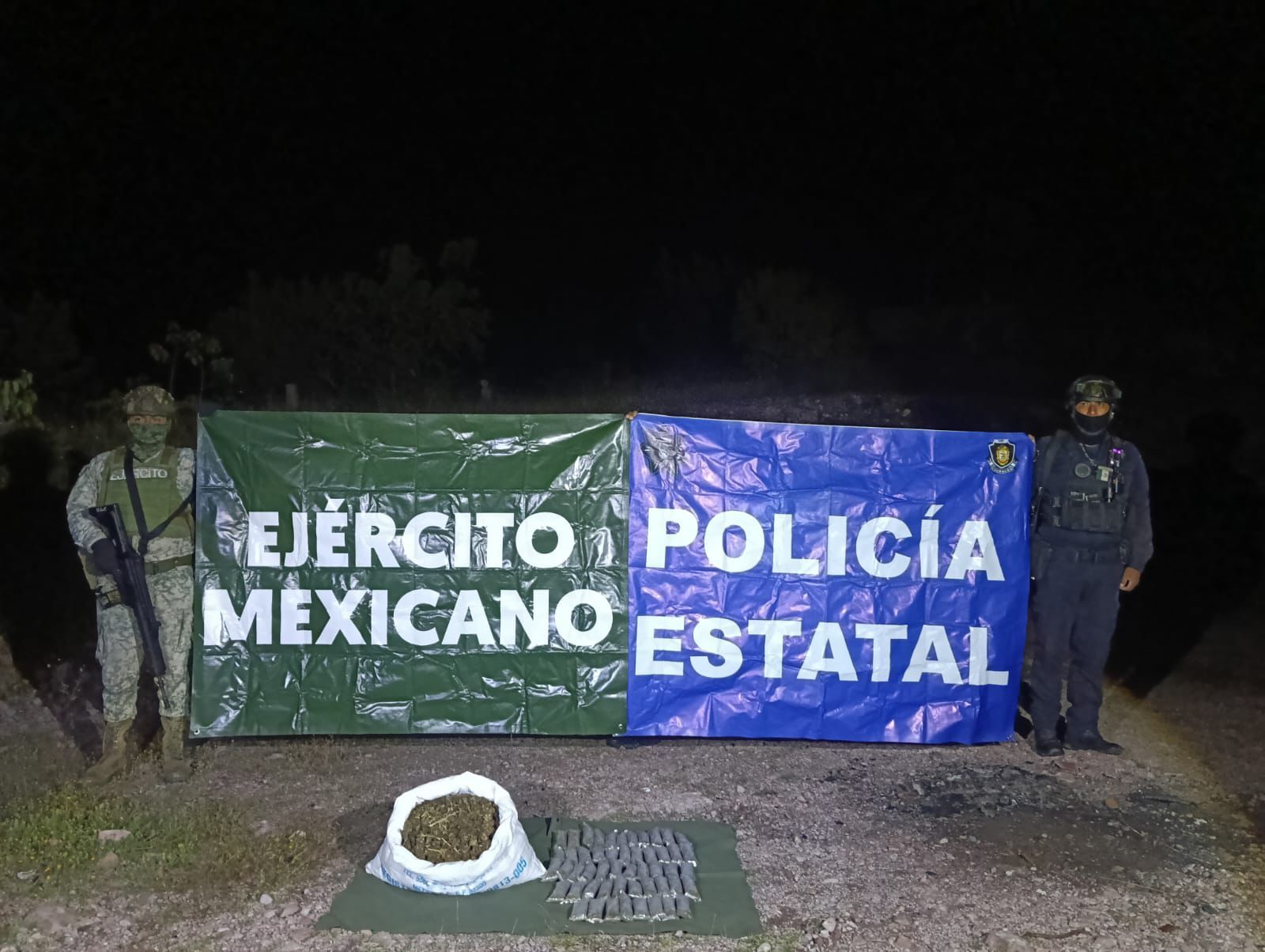En acciones de seguridad y prevención del delito, personal de la Policía Estatal, en coordinación con el Ejército Mexicano y la Guardia Nacional, aseguró probable droga en el municipio de Leonardo Bravo.