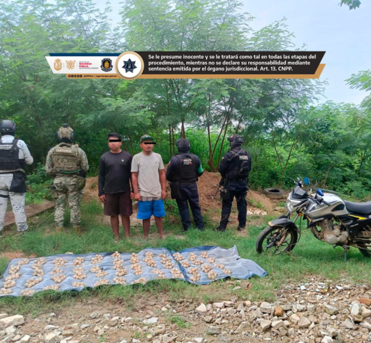Detienen Policía Estatal, Ejército Mexicano y Guardia Nacional a dos hombres con droga y dinero en efectivo en Copala