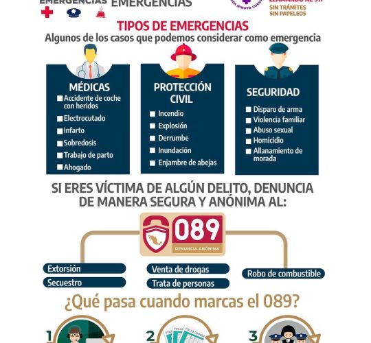 Los números 911 y 089 están listos para atenderte en cualquier emergencia.