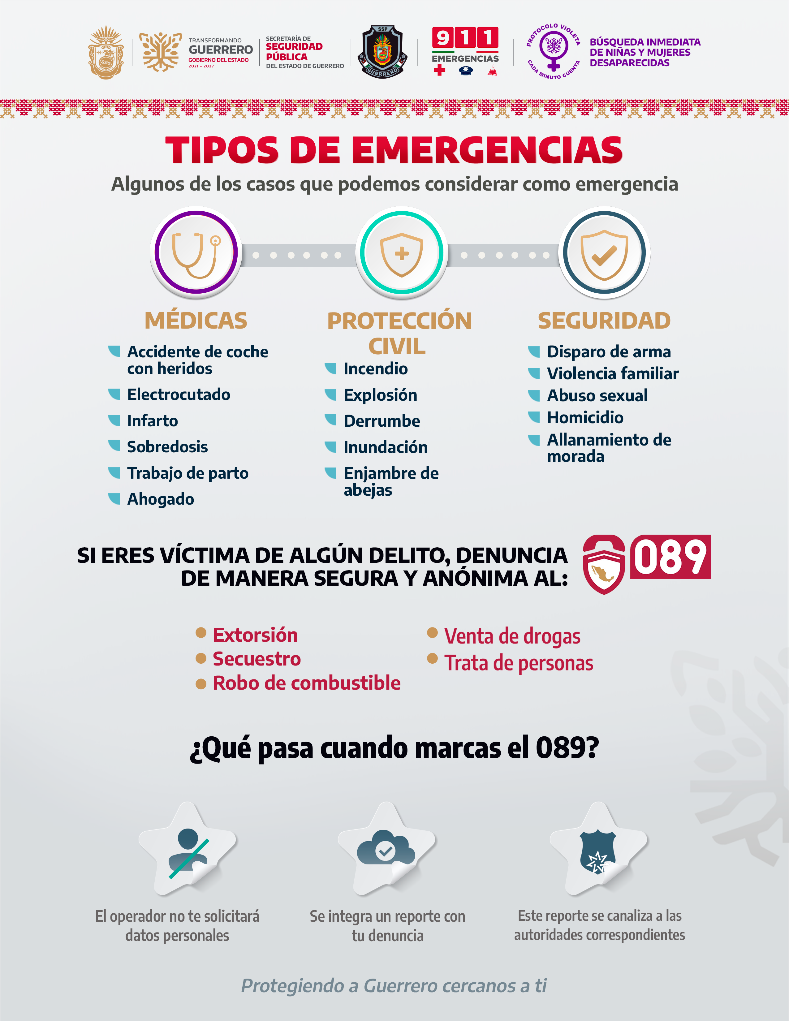 ¿Sabías que puedes denunciar de forma segura y sin dar tus datos? Llama al 089 si eres testigo o víctima de delitos como extorsión, venta de drogas o trata de personas. Y ante emergencias como accidentes, incendios o violencia, marca al 911.