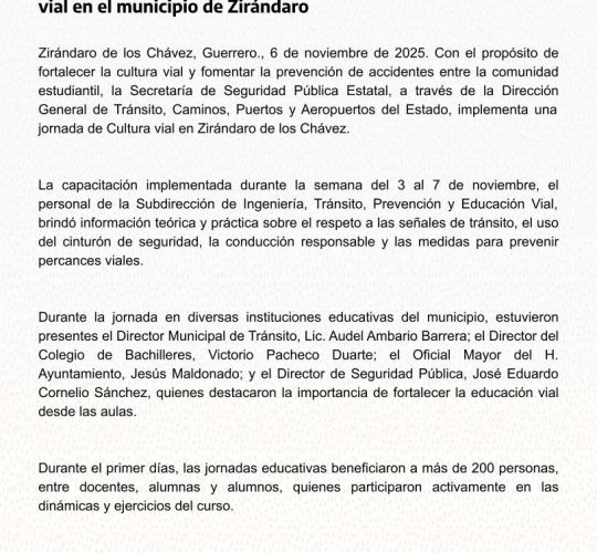 06 Noviembre 2025 Impulsa SSP Guerrero acciones para fortalecer la seguridad vial en el municipio de Zirándaro
