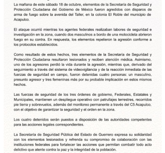 13 Noviembre 2025 Policía Estatal detuvo en la colonia La Fábrica a un masculino, en el municipio de Acapulco.