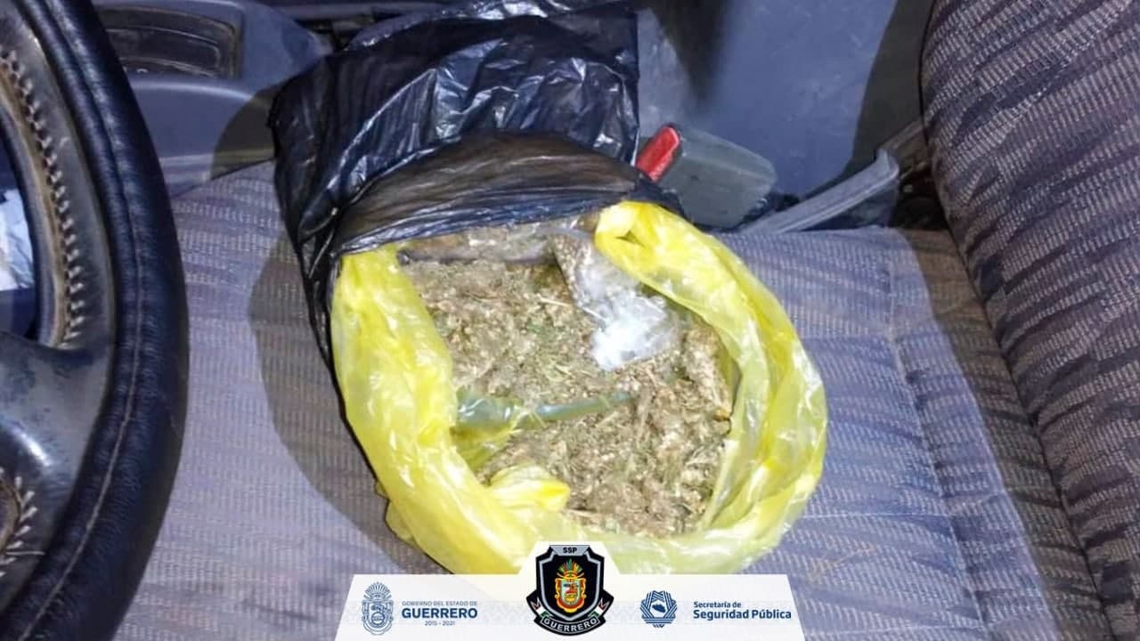 Tras una inspección, se ubicó entre los asientos del piloto y copiloto una bolsa de plástico en cuyo interior se localizó hierba seca color verde, con características similares a la marihuana.