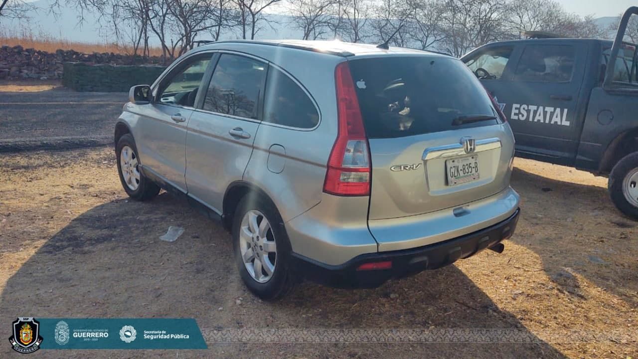 El vehículo, marca Honda, tipo CRV, modelo 2009 y placas de circulación del estado, fue ubicado y recuperado sobre la carretera federal que conduce a Filos de Caballos, en el punto conocido como Las Cruces, a la altura de la localidad de Xochipala, municipio de Eduardo Neri.