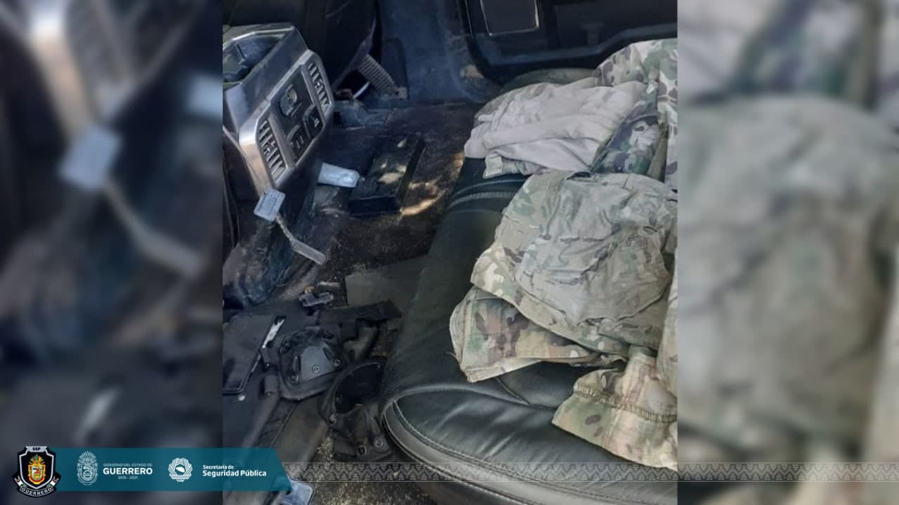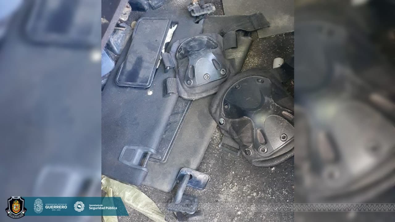 Tras una inspección se localizó en su interior lo siguiente: un chaleco táctico, una mochila pixelada, dos camisolas y un pantalón de camuflaje, así como un par de corderas.