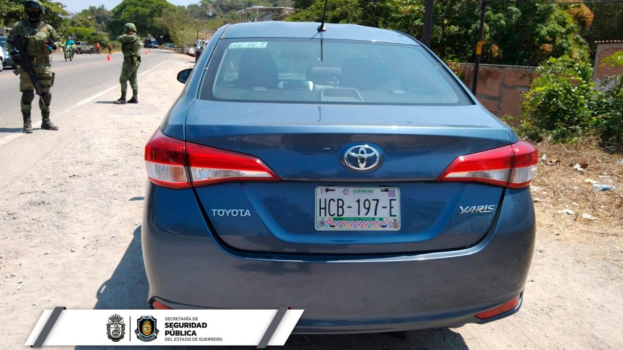 Se trata de un automóvil marca Toyota, tipo Yaris, modelo 2018, con placas del estado de Guerrero.