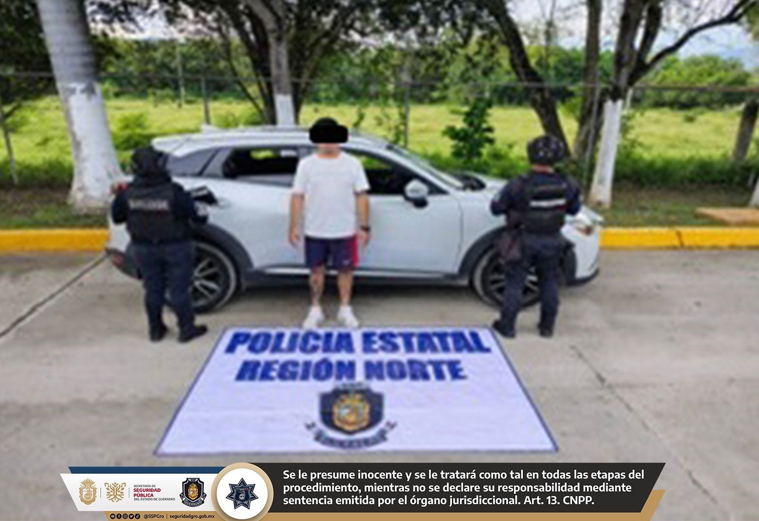 Policía Estatal recuperó un vehículo con reporte de robo en la colonia Centro, en el municipio de Iguala, y detuvo al conductor.