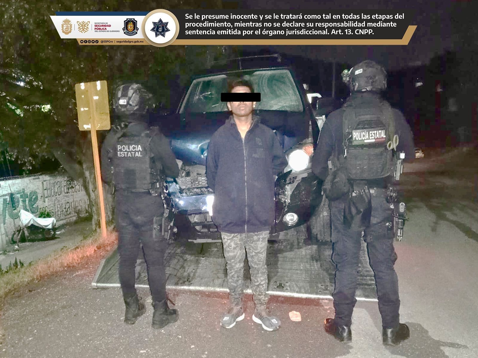 Videovigilancia y arcos lectores permiten a la Policía Estatal detener a un masculino y recuperar un vehículo robado en Chilpancingo