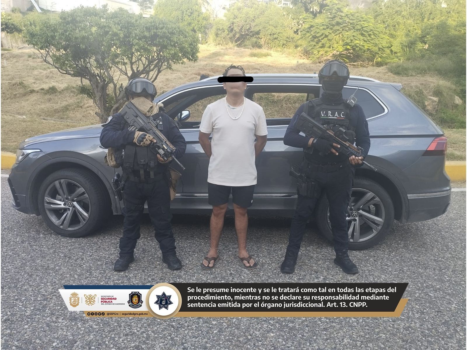 Policía Estatal logró la detención de un masculino y la recuperación de un vehículo con reporte de robo sobre la avenida Farallón, en el municipio de Acapulco.